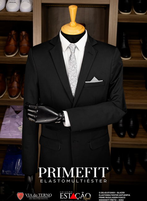 O Blazer Slim Prime Fit Elastomultiester Preto da VIA do Terno é a definição máxima de versatilidade unida à alta performance. Parte da nossa consagrada Coleção Estação Real (linha Antuérpia Prime), este blazer foi projetado sob o conceito "Todo tempo. Todo lugar. O seu momento", sendo a peça definitiva para o homem que precisa estar impecável do escritório ao happy hour, ou em eventos de esporte fino.