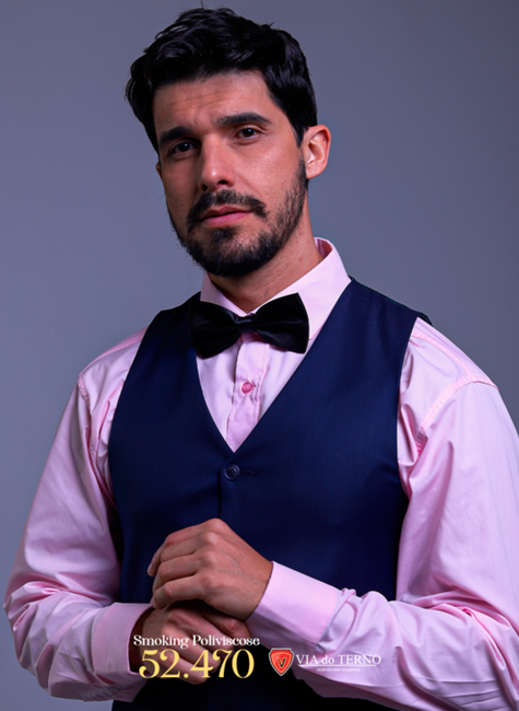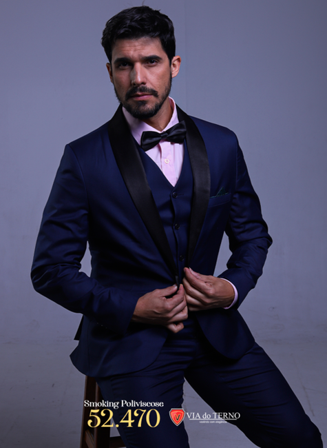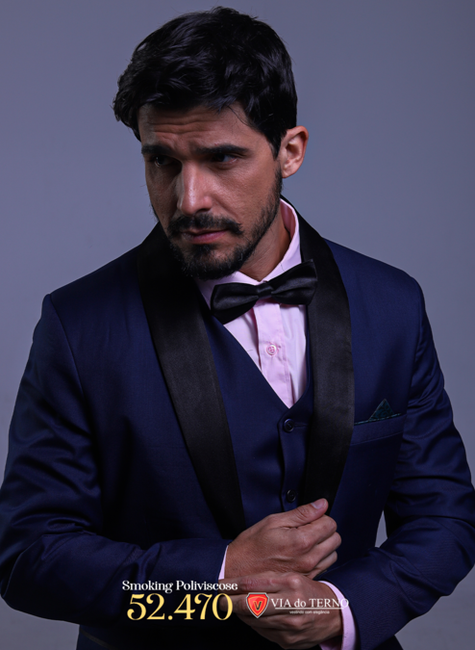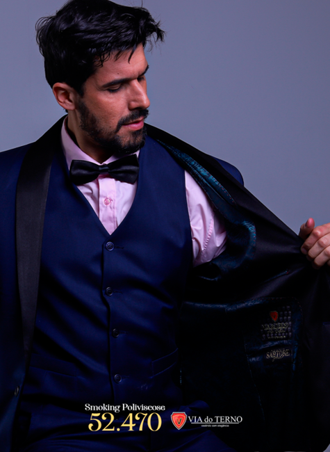 Prepare-se para impressionar com o Smoking Azul Marinho Slim da Via do Terno, a escolha perfeita para quem busca uma alternativa clássica e sofisticada ao preto, com um toque de modernidade. Este Super Smoking, com seu impecável corte italiano Slim Fit, é o traje ideal para os momentos mais importantes da sua vida, como casamentos, formaturas e eventos de gala, especialmente recomendado para cerimônias noturnas.