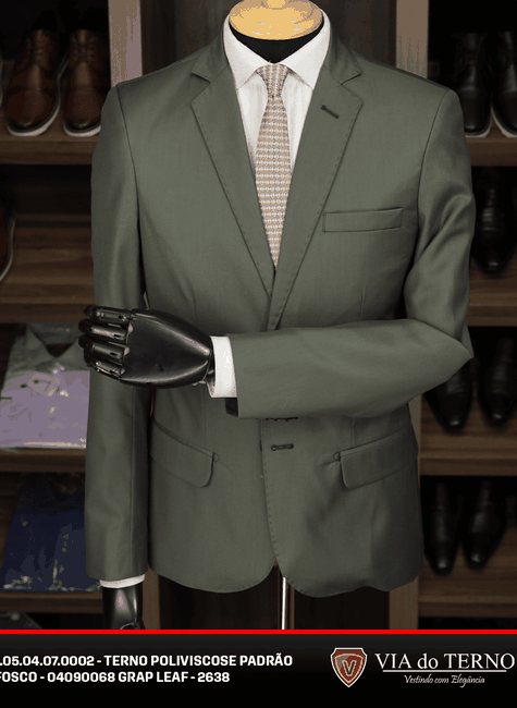 Sua cor Grap Leaf — um verde acinzentado moderno — traz um visual contemporâneo e versátil, ideal para casamentos ao ar livre, formaturas e eventos sociais que pedem um terno elegante, mas com um diferencial de estilo.
