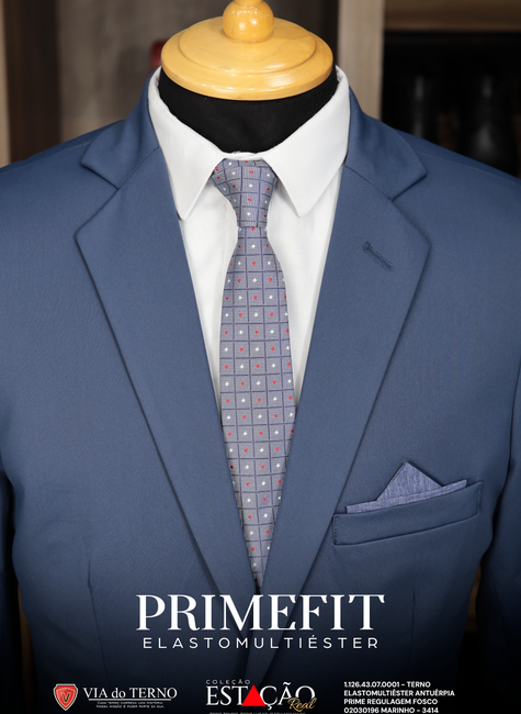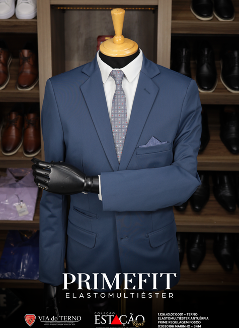 Terno elastomultiéster com calça ajustável, feito para quem exige mobilidade sem abrir mão da elegância.