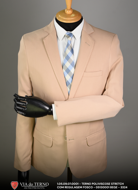 - Versatilidade Cromática: O tom bege é fácil de combinar com camisas brancas, azuis claras e diversos padrões de gravatas.