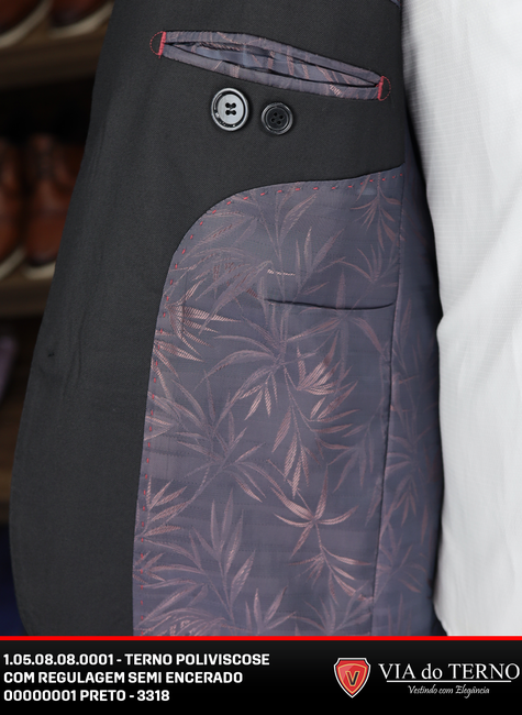 Tecido e Acabamento Diferenciado Confeccionado em Poliviscose de alta qualidade, este terno oferece resistência e praticidade, amassando menos que os tecidos convencionais e mantendo a aparência impecável por mais tempo. O grande destaque visual é o acabamento Semi Encerado, que confere um brilho sutil e sofisticado à peça (sem ser exagerado), ideal para destacar sua presença em eventos noturnos, casamentos ou ambientes corporativos que exigem uma apresentação superior.