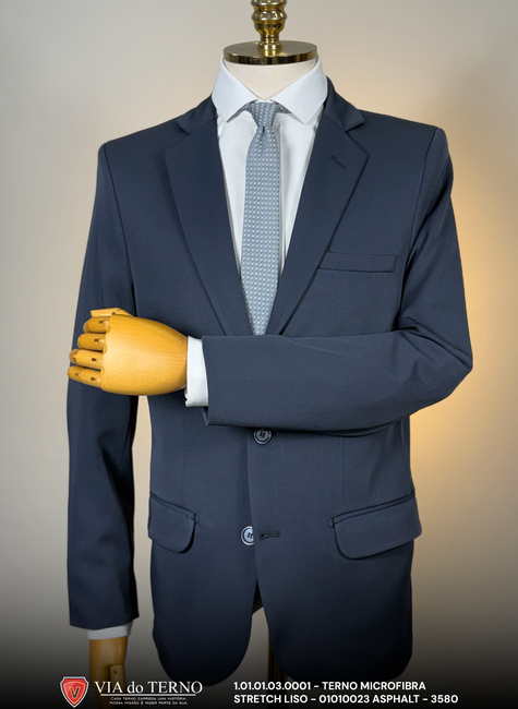 O Terno Slim Comfort Asphalt da VIA do Terno é a escolha ideal para o homem dinâmico que exige conforto absoluto sem abrir mão da elegância. Confeccionado em Microfibra Stretch Premium, este traje integra fios de elastano à sua composição, permitindo que a peça se molde ao corpo e ofereça uma liberdade de movimento superior aos ternos tradicionais.