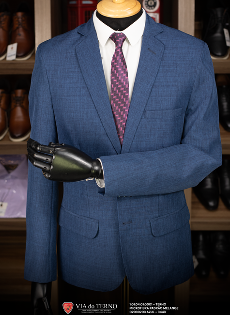 O Terno Slim Comfort Azul Melange é a escolha perfeita para o homem contemporâneo que valoriza detalhes sutis. O efeito melange oferece uma textura visual rica, mesclando diferentes tons de azul para criar uma peça com profundidade e estilo único. Produzido em Microfibra de alta performance, este terno garante um visual impecável com a praticidade de um tecido que resiste a vincos.