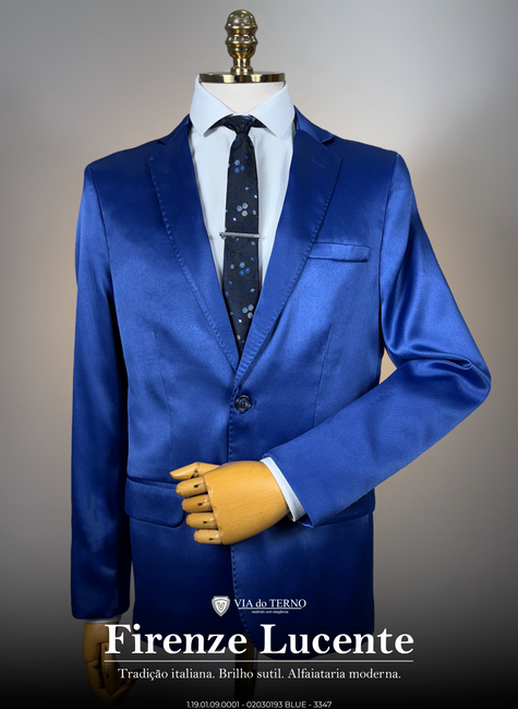 A grande estrela deste modelo é a sua cor "Blue" incrivelmente vibrante, potencializada pelo acabamento Brilhante (Lucente) do tecido Preston Premium. Esse material de excelência capta a luz de forma sofisticada e conta com 4% de elastano em sua composição, oferecendo um conforto incomparável e total liberdade de movimentos. A modelagem Slim Comfort entrega um corte perfeitamente alinhado, desenhando a silhueta com maestria e bem-estar.