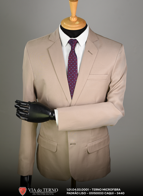 Este modelo apresenta a modelagem Slim padrão (sem regulagem na calça), focada em um caimento direto e estruturado que valoriza a silhueta masculina de forma natural e confortável. Sua tonalidade caqui é extremamente versátil, sendo a opção favorita para casamentos ao ar livre, eventos diurnos ou para profissionais que desejam variar o clássico azul e cinza com estilo.