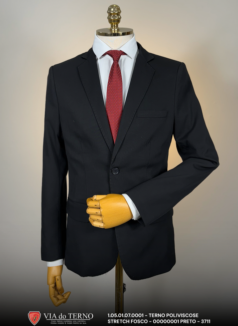 Com seu acabamento fosco, o tom preto ganha uma profundidade sofisticada e discreta, absorvendo a luz de maneira ideal e sendo a opção perfeita para casamentos noturnos, formaturas, eventos de gala e ambientes corporativos de alta exigência. A modelagem Slim Comfort entrega um corte perfeitamente alinhado e levemente acinturado, proporcionando um visual contemporâneo com bem-estar absoluto.