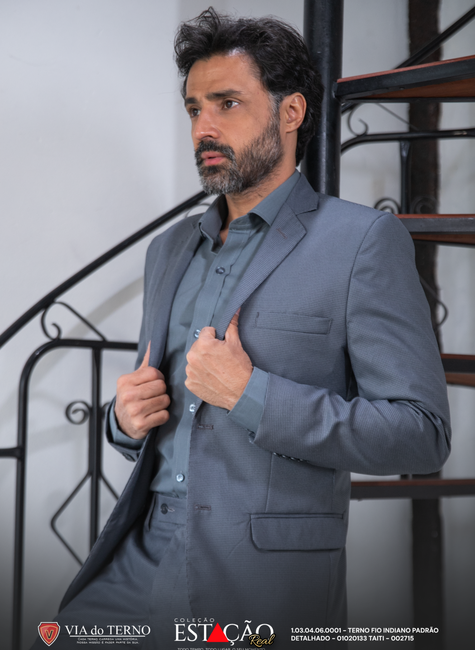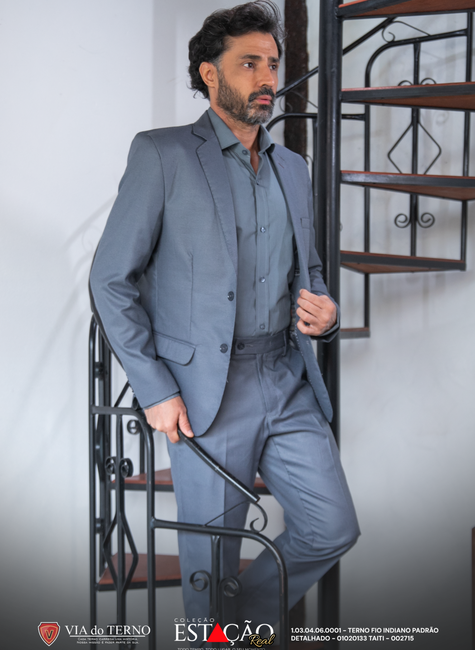 Eleve seu estilo com o Terno Slim Fio Indiano Chumbo Taiti. Esta peça é a escolha ideal para quem busca um visual moderno e polido, combinando o corte slim que é tendência mundial com a qualidade excepcional do tecido Fio Indiano.