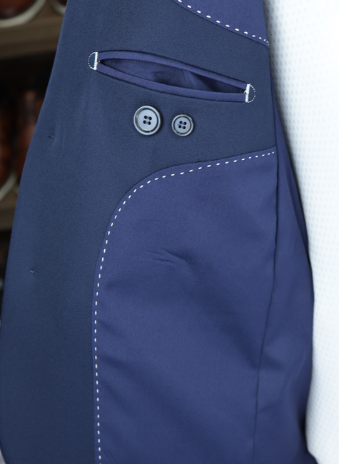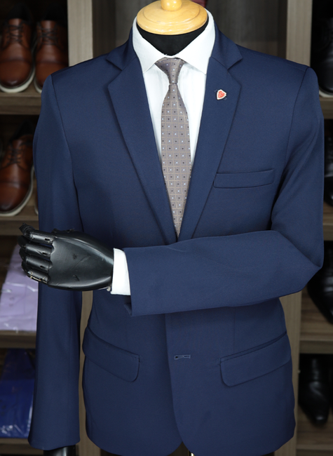 - Detalhes: Lapela notch, dois botões frontais, forro interno premium, bolsos internos funcionais.