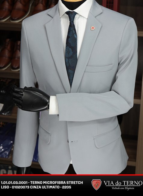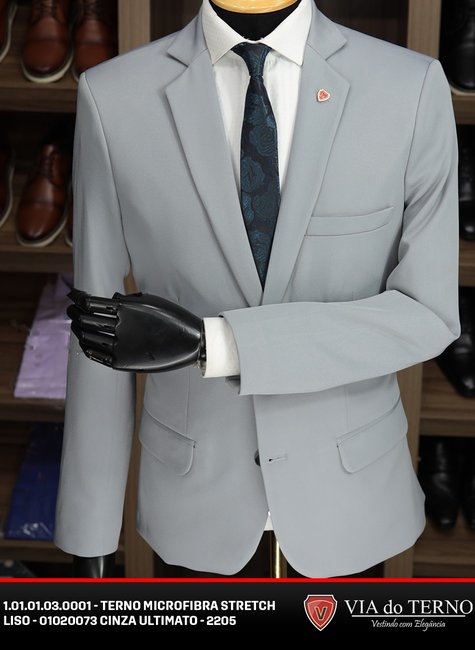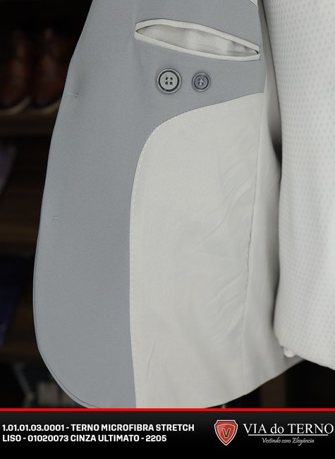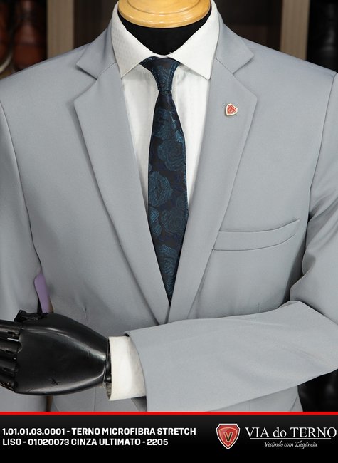 Terno Slim Microfibra Cinza Ultimato masculino VIA do Terno. Corte moderno, caimento perfeito e tecido confortável. Ideal para trabalho, eventos e ocasiões especiais.