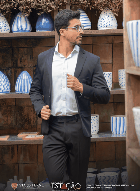 O Terno Slim Microfibra Preto Fosco Masculino foi projetado para homens que valorizam um visual moderno, sofisticado e versátil.