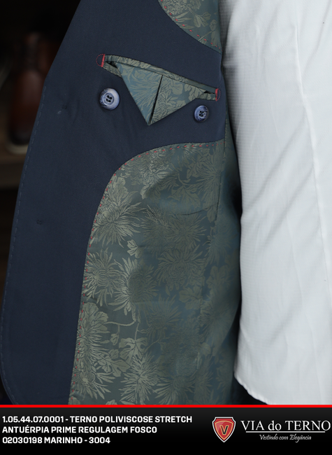 • Detalhes: Lapela notch, dois botões frontais, forro interno premium, bolsos internos funcionais, calça com regulagem na cintura para ajuste perfeito.
