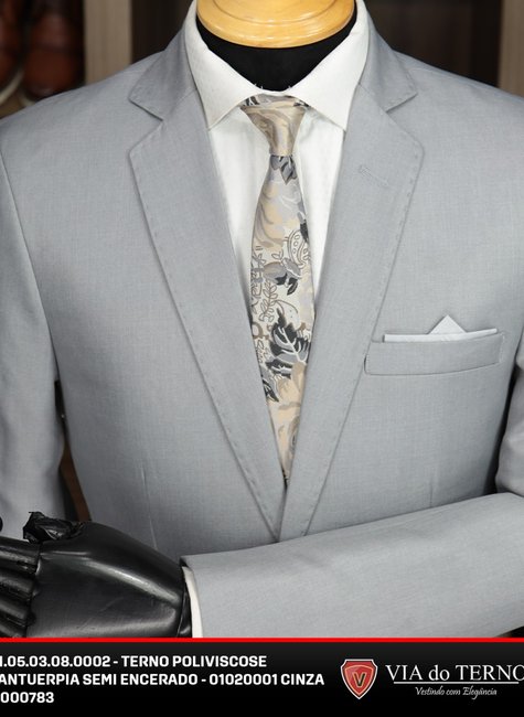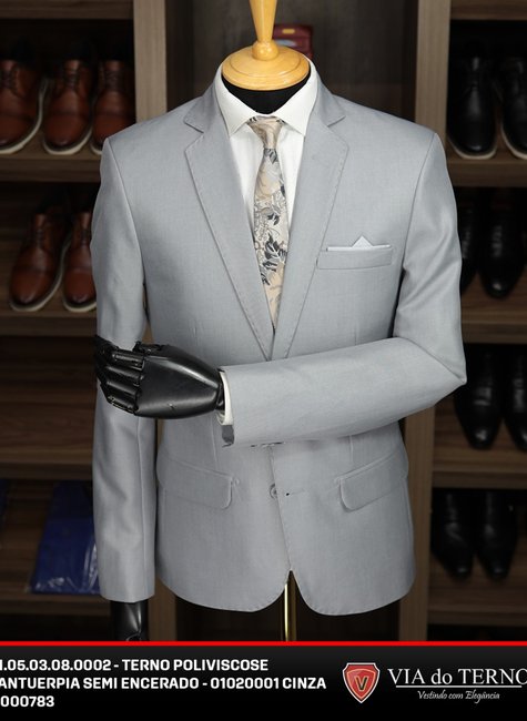 Terno Slim Poliviscose - Semi Encerrado Cinza