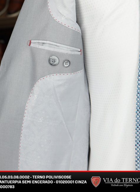 - Detalhes: Lapela notch, fechamento com dois botões, bolsos internos funcionais, forro interno premium
