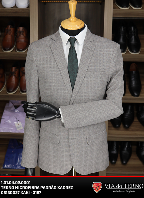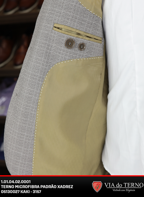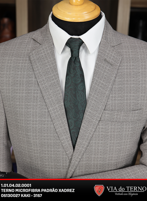 O Terno Slim Xadrez Kaki em Microfibra é a peça que faltava para quem deseja elevar o nível do guarda-roupa social. Fugindo das cores tradicionais escuras, o Kaki (um tom bege acinzentado) traz leveza e sofisticação, sendo uma tendência absoluta para casamentos ao ar livre, eventos diurnos e ambientes de trabalho criativos.