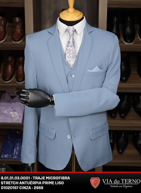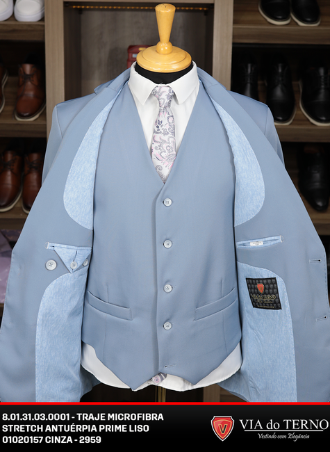 Confeccionado em Microfibra de alta qualidade, este traje oferece durabilidade excepcional e resistência a amassados, mantendo você impecável do início ao fim do evento.