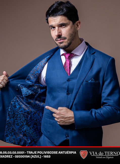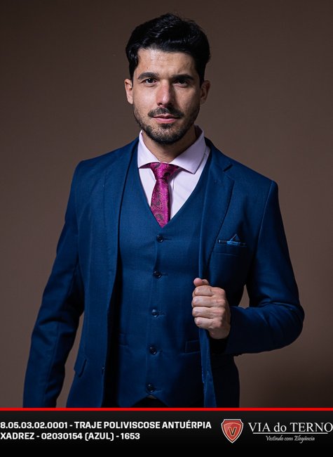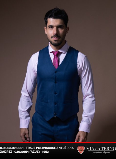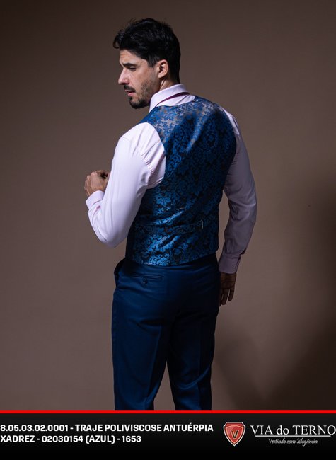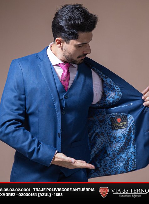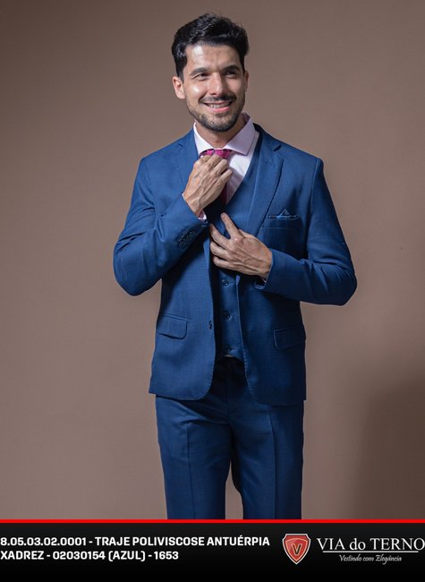 Traje Poliviscose Xadrez Azul masculino VIA do Terno.